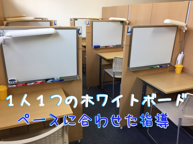 ナビ個別指導学院の授業は、個別の席ごとに設置された自分専用のホワイトボードで解き方や考え方を一緒に確認、それから生徒が問題を解くという「個別授業」スタイルです。