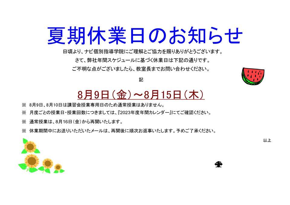 ※8/11(日)~8/15(木)は教室は開いておりません。
