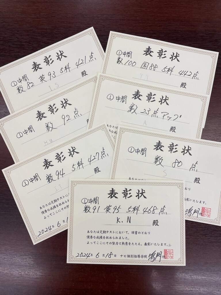 ①学期中間テスト 成績表彰 (鳴門第二中・瀬戸中・大麻中)