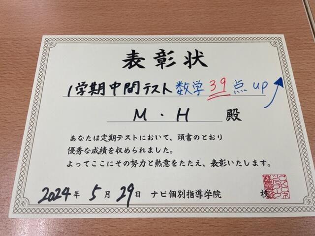最近入塾して頂いたM・Hさん、今まで中々勉強に向かう事ができなかったとこ、ナビに入塾して勉強が分かるようになった事でテスト勉強を頑張れたとの事でした!