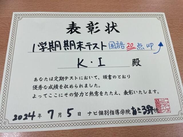 二年生になってから国語の授業を開始しましたが、最初のテストでよく頑張ってくれました!