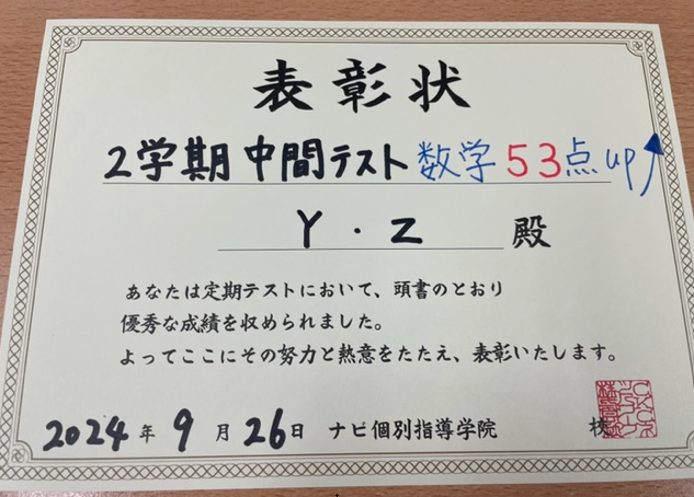 次のテストではもっと点数を伸ばしたいとYくんも言っていますので、次もさらに上を目指して頑張りましょう!!