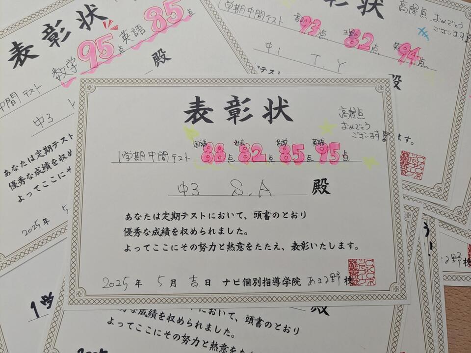 中学三年のこの大事なテストでしっかり結果を出せましたね!