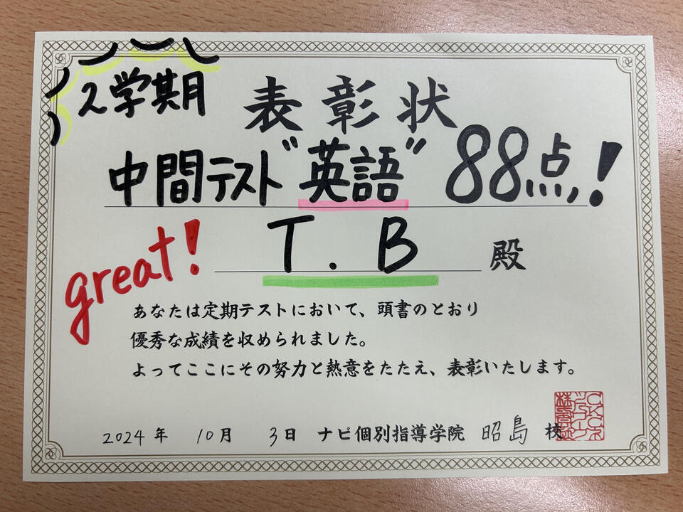 本日は2学期中間テスト成績優秀者発表 第二弾です!「