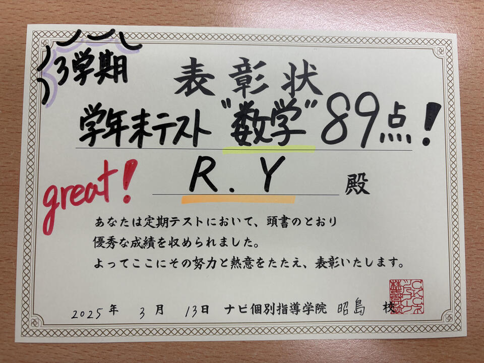 毎週決まった時間で自習に取り組んでいた成果が発揮されていましたね!