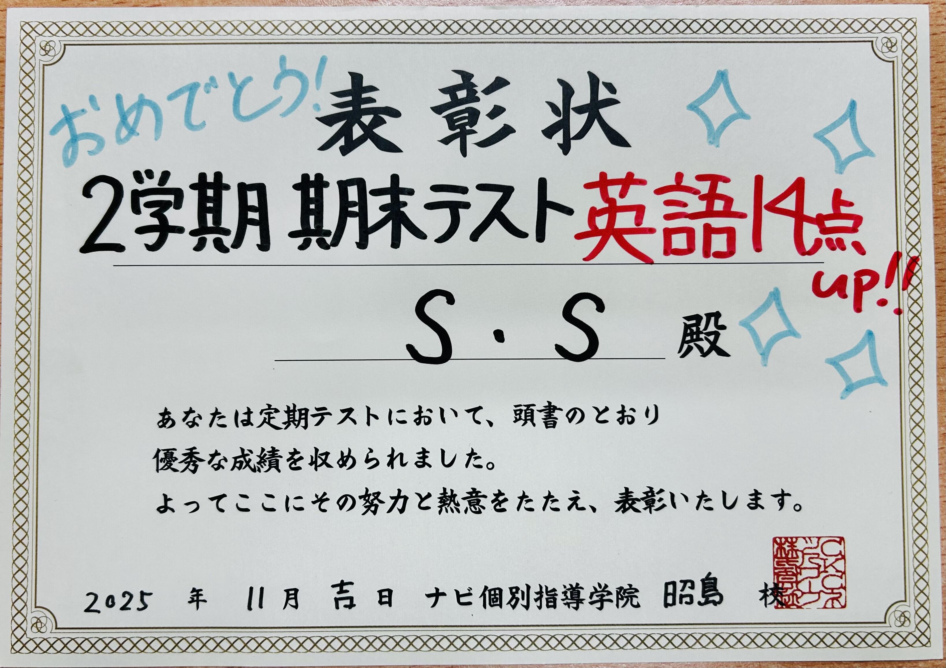 毎週文句を言いつつ頑張ってくれている生徒です。