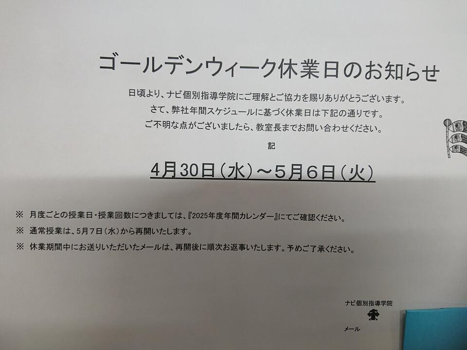 日頃より、ナビ個別指導学院にご理解とご協力を賜りありがとうございます。