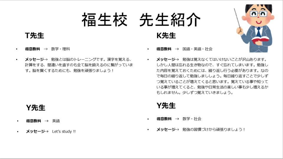 ほめる指導で生徒のやる気を引き出します。おせっかいな先生たちがパート