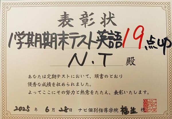 中3のNさん。4月から入塾し、この期末テストに向けて