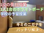 ナビ個別指導学院の授業は、個別の席ごとに設置された自分専用のホワイトボードで解き方や考え方を一緒に確認、それから生徒が問題を解くという「個別授業」スタイルです。