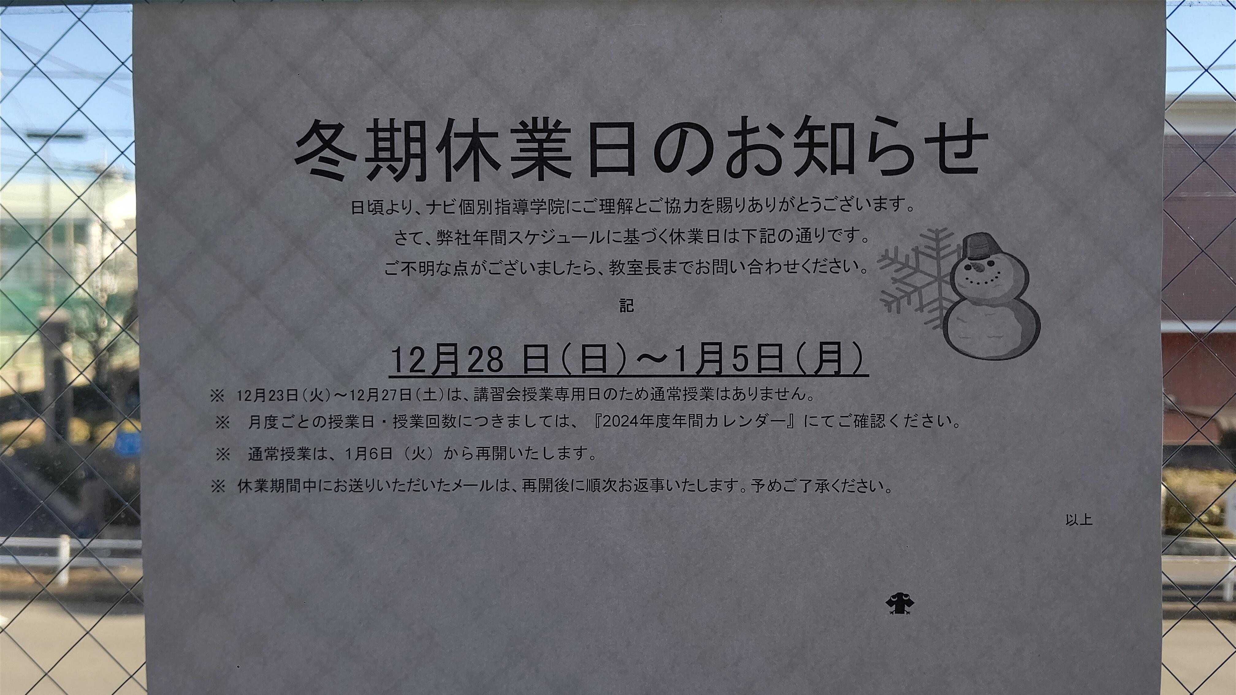 冬期休業日 12月28日(日)~1月5日(月)