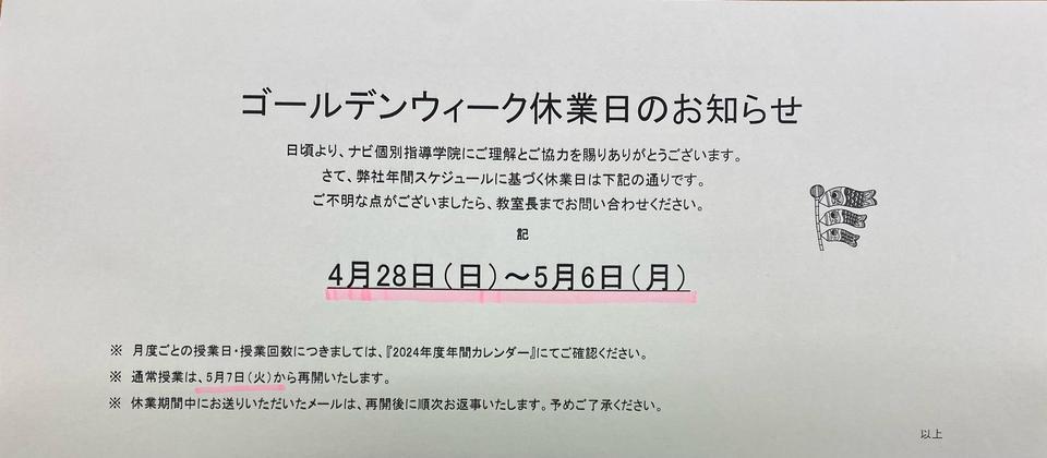 教室も開いていないため、既塾生のみなさんは特にご注意ください。