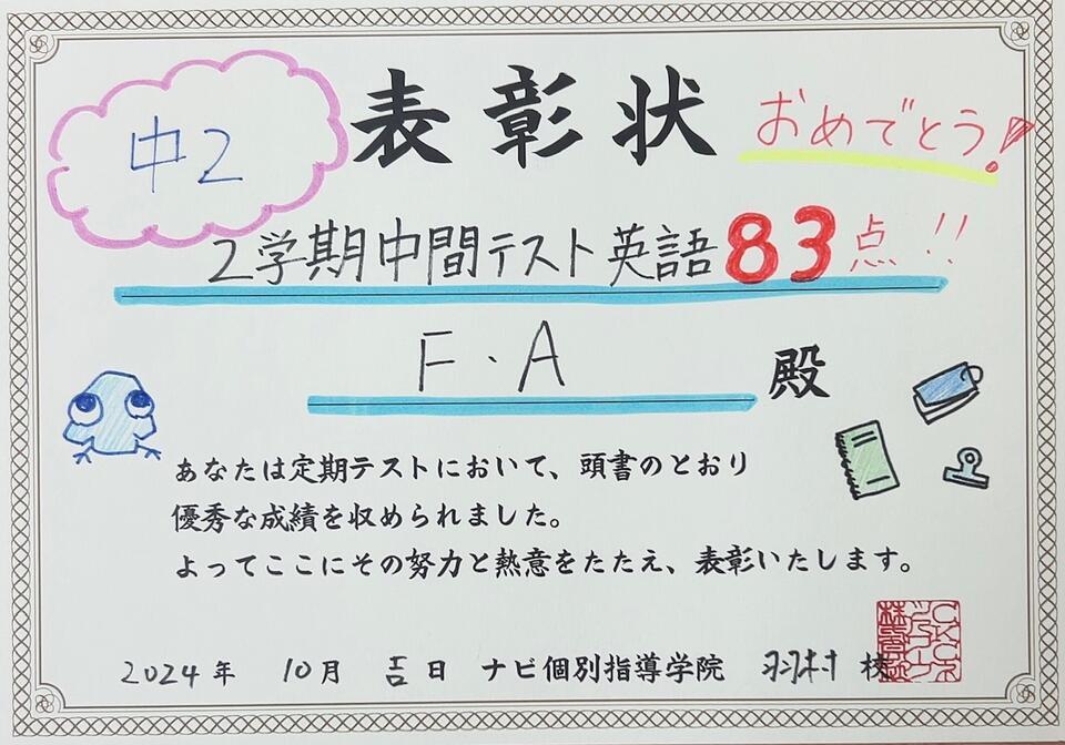 今回は2学期中間テストの成績アップ者のご紹介です!