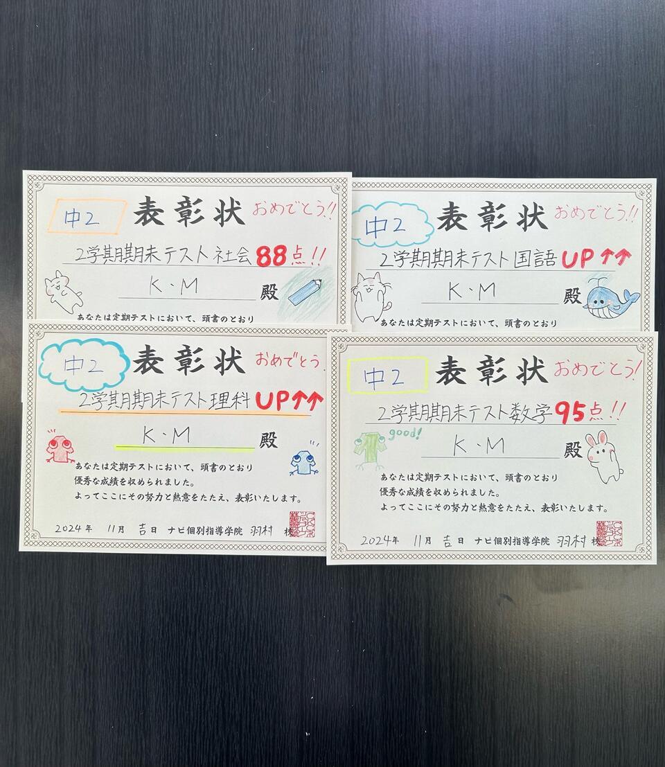 今回は成績優秀者発表です!