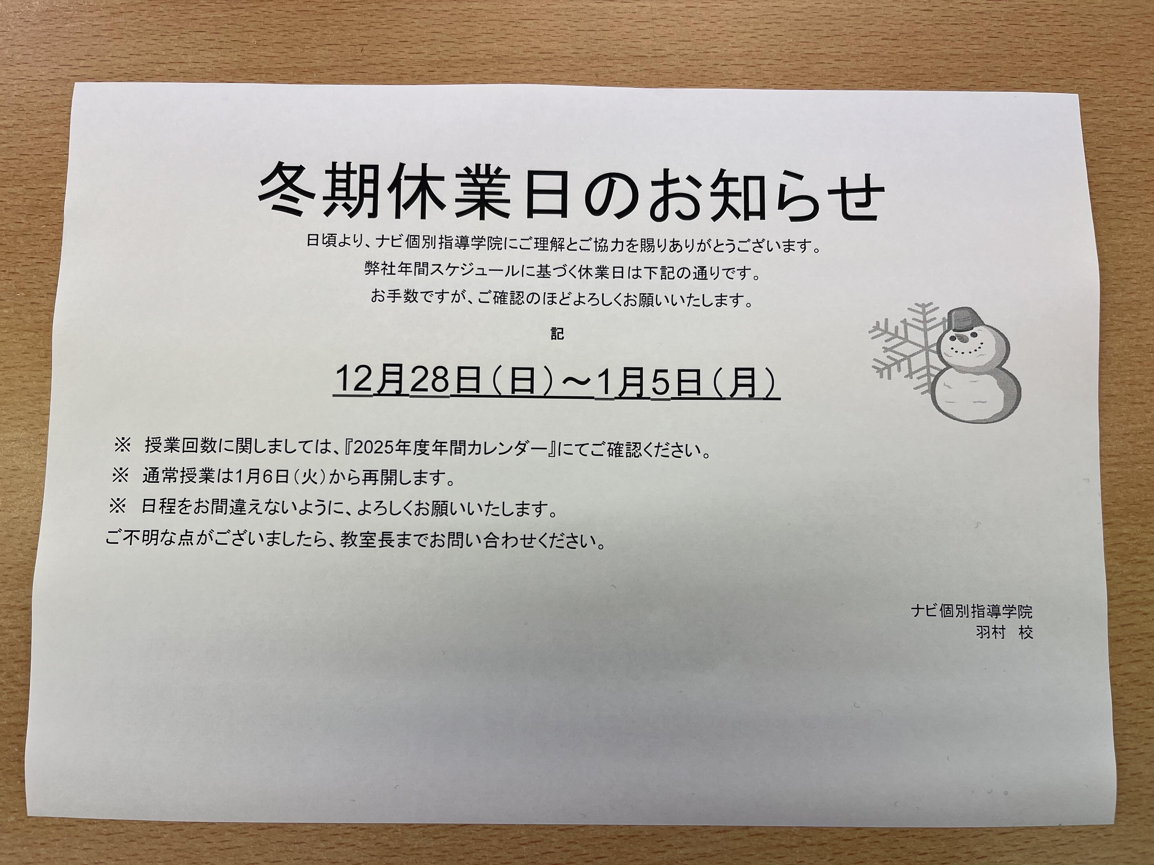 【冬期休業期間のお知らせ】