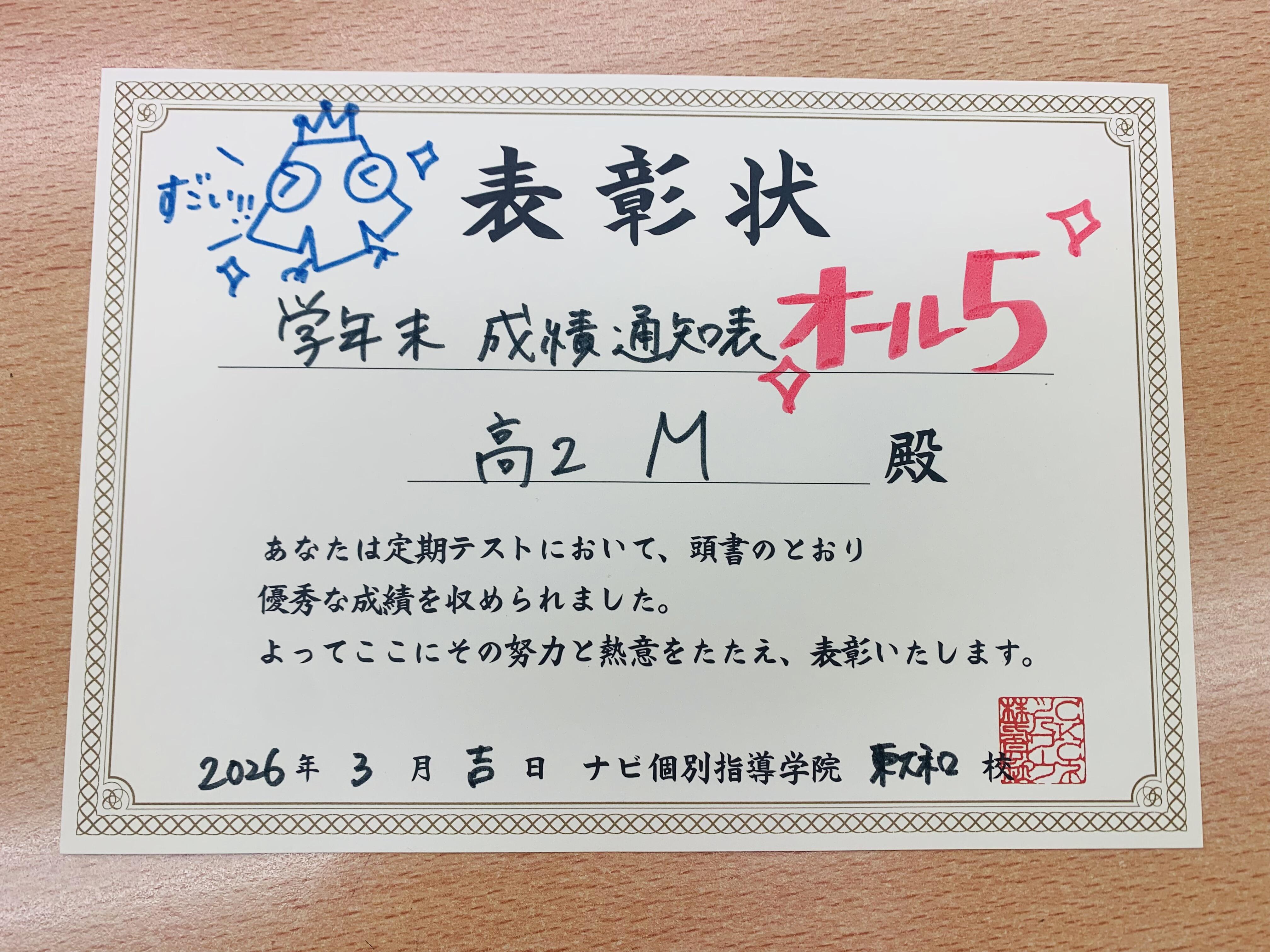 通知表で素晴らしい成績を残しましたのでご紹介いたします!