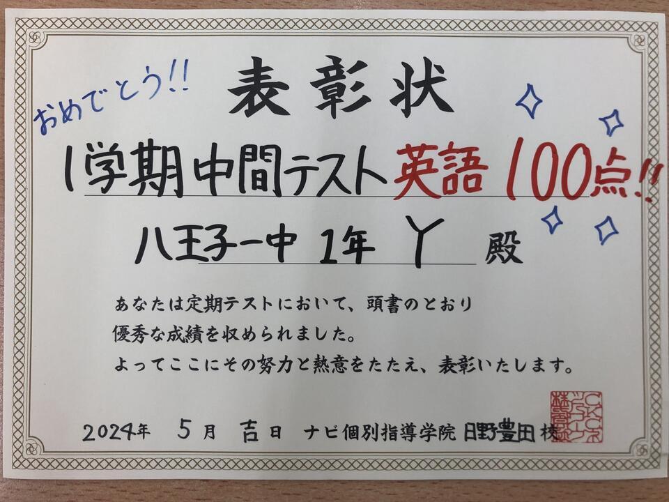 今回は初テストで英語100点を取ったYさんの紹介です!