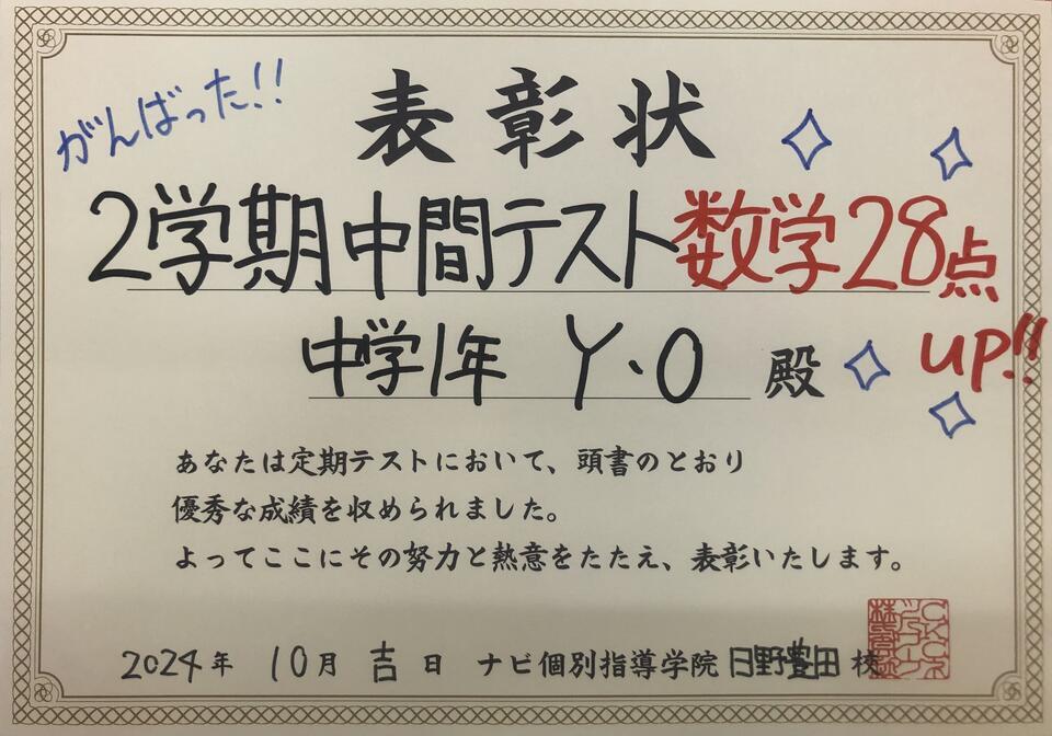 今回は日野豊田校の生徒で数学が28点UPした生徒の紹介です!