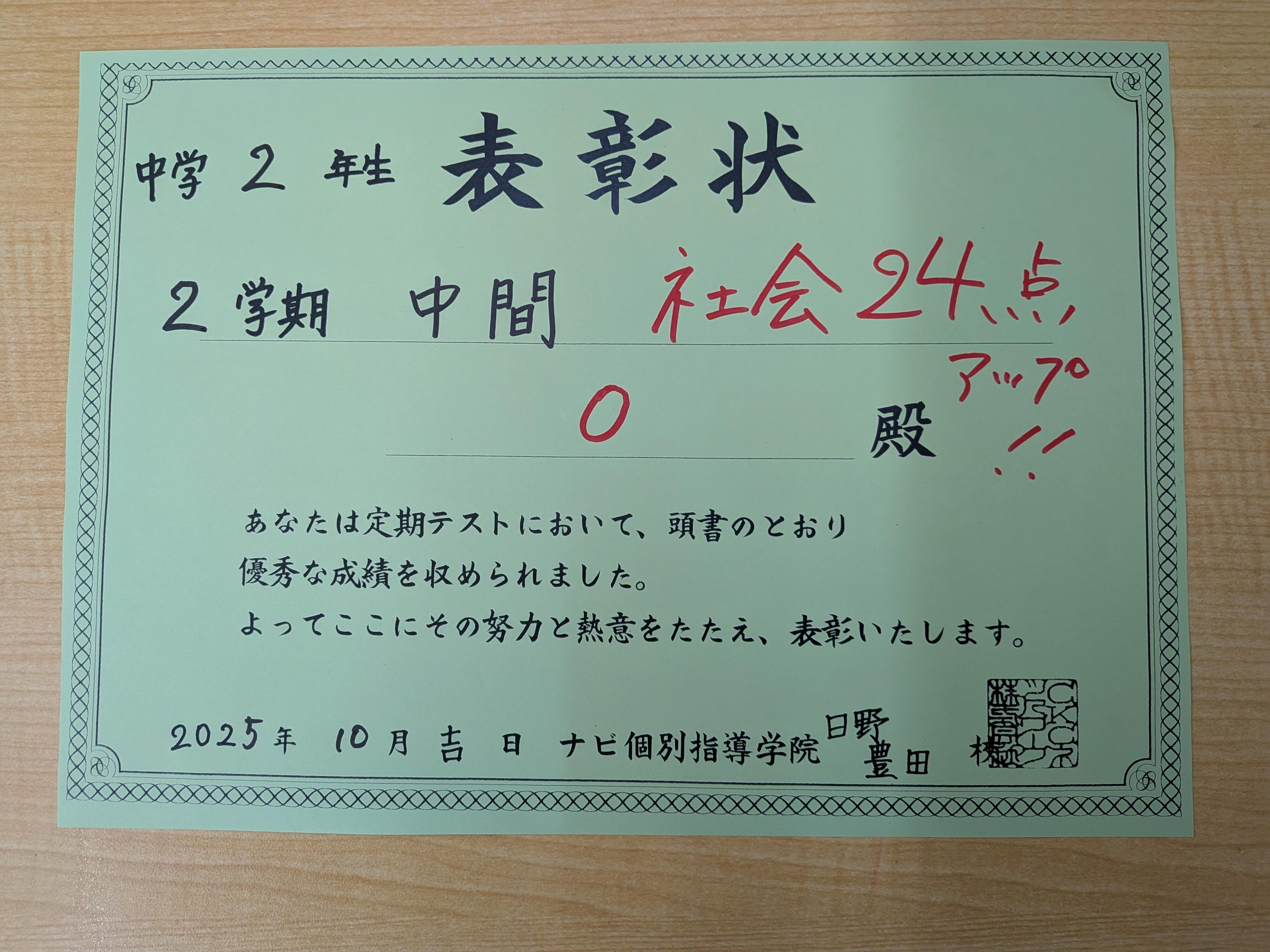 引き続き2学期中間テストの頑張った報告です!