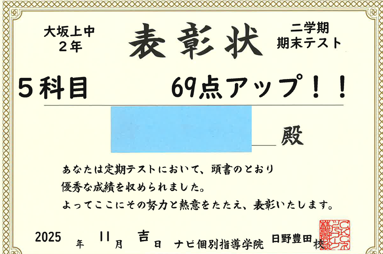 本日授業のあった生徒が、2学期期末のあとの最初の授業だった為、