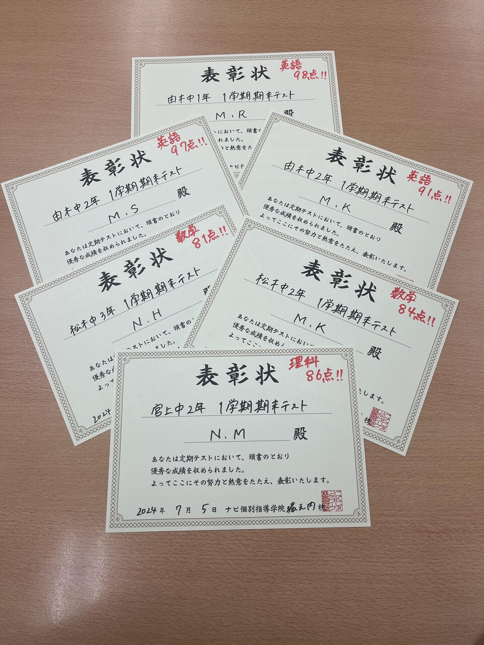 テスト勉強を頑張った生徒さんに向けて表彰上も作成しました!