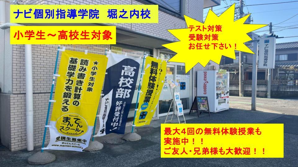おせっかいな先生たちと自分でできた!に導く塾 ナビ個別指導学院 堀之内校 です!
