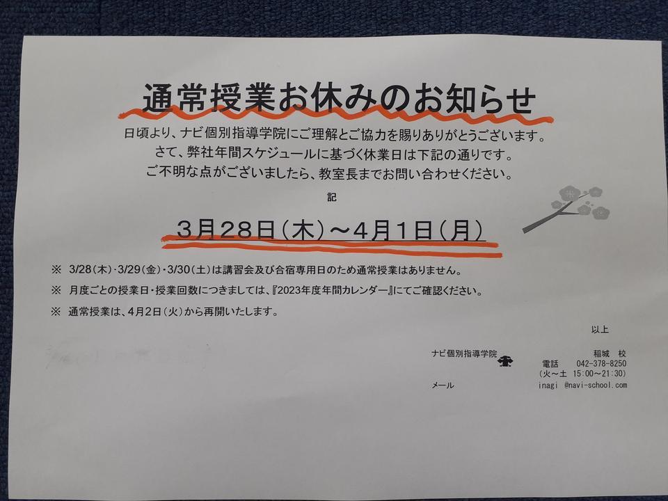 3月28日(木)~3月30日(土)は講習会をお申込みいただいた生徒と