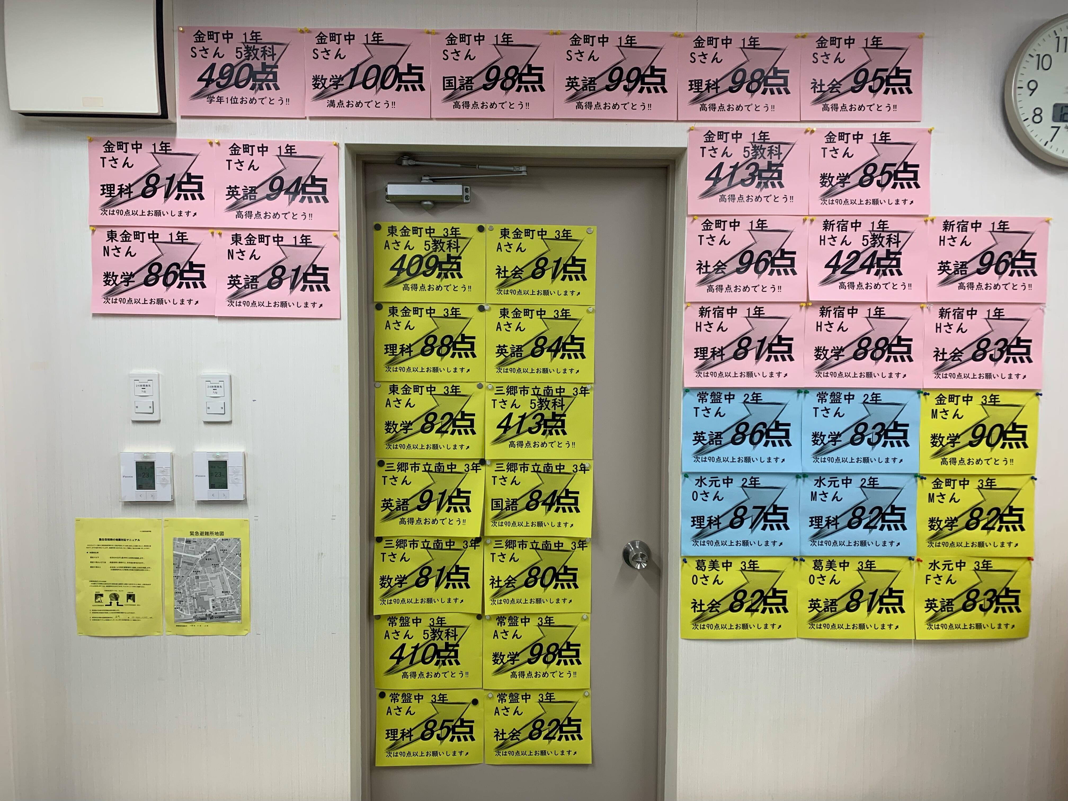 金町中1 5教科490点(学年1位)