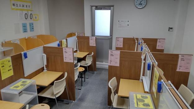 ナビ個別指導学院の授業は、個別の席ごとに設置された自分専用のホワイトボードで解き方や考え方を一緒に確認、それから生徒が問題を解くという「個別授業」スタイルです。