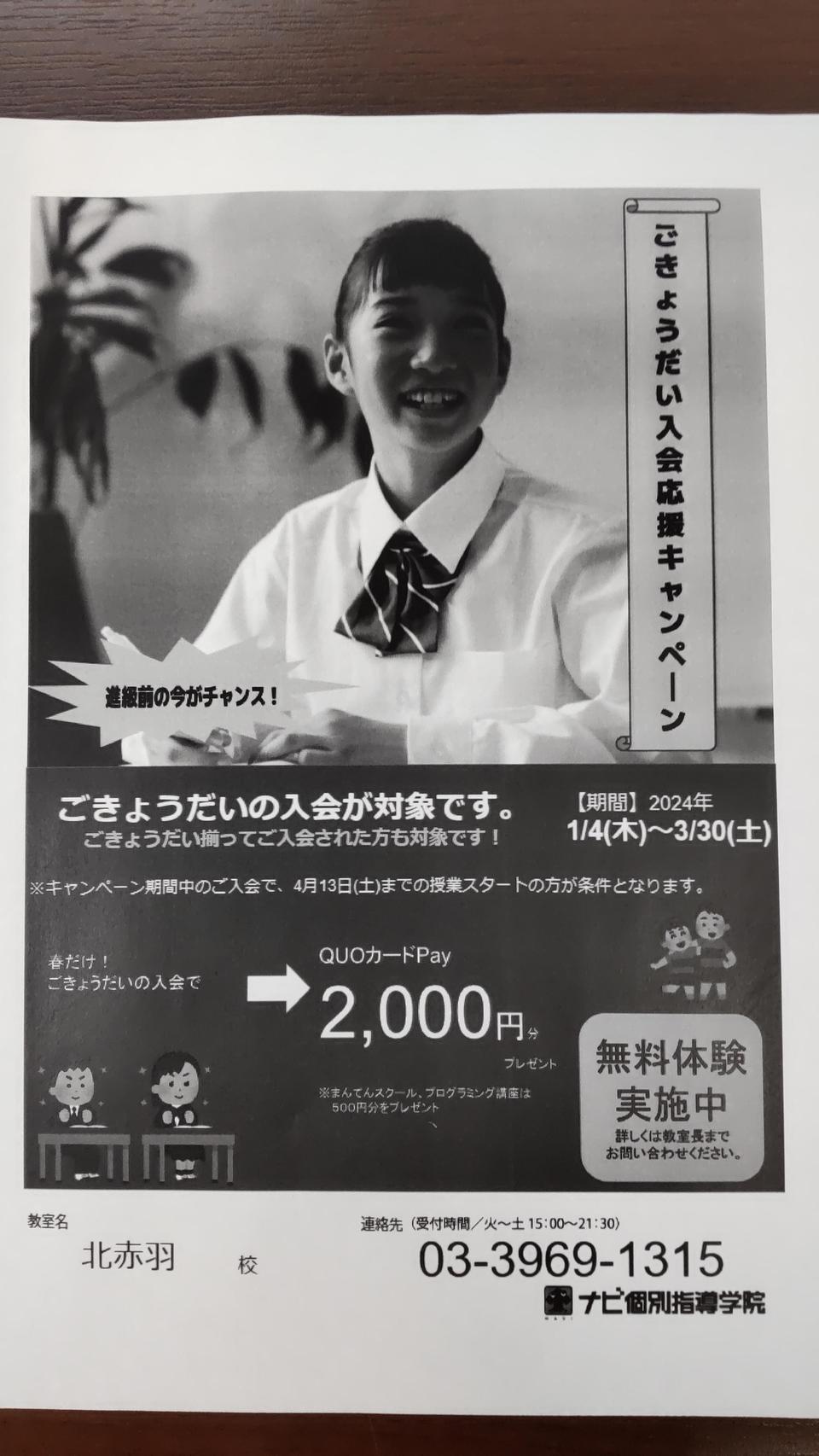 期間:3/30入会手続き済み(4/13までに初回授業スタート)