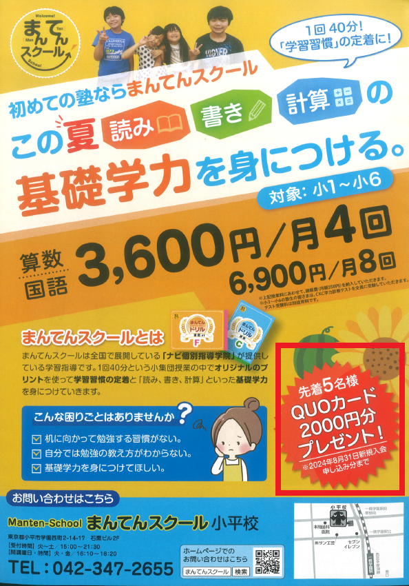 ナビは小学生のコースも充実!!8月31日までにまんてんコースご入会された方限定!