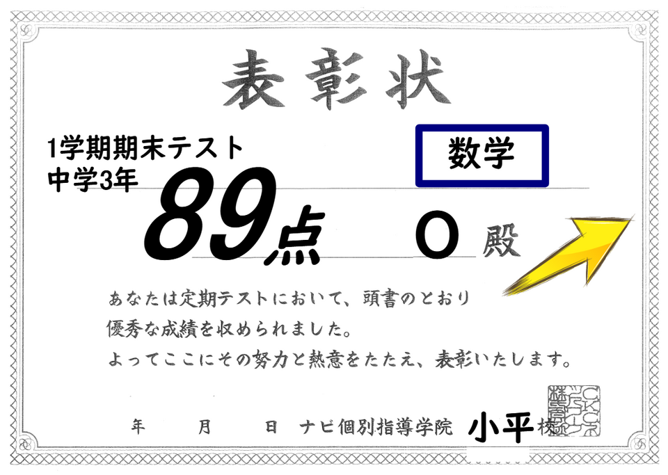 入塾時60点⇨89点!