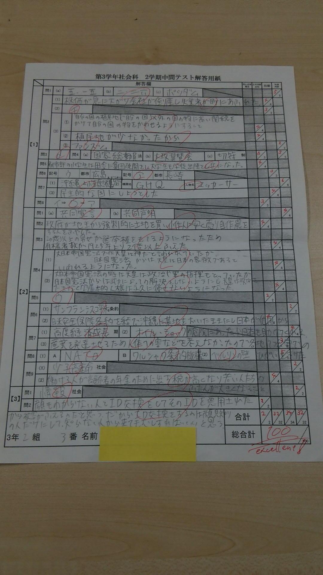 近隣の中学校では、いよいよ本日から中間テストが