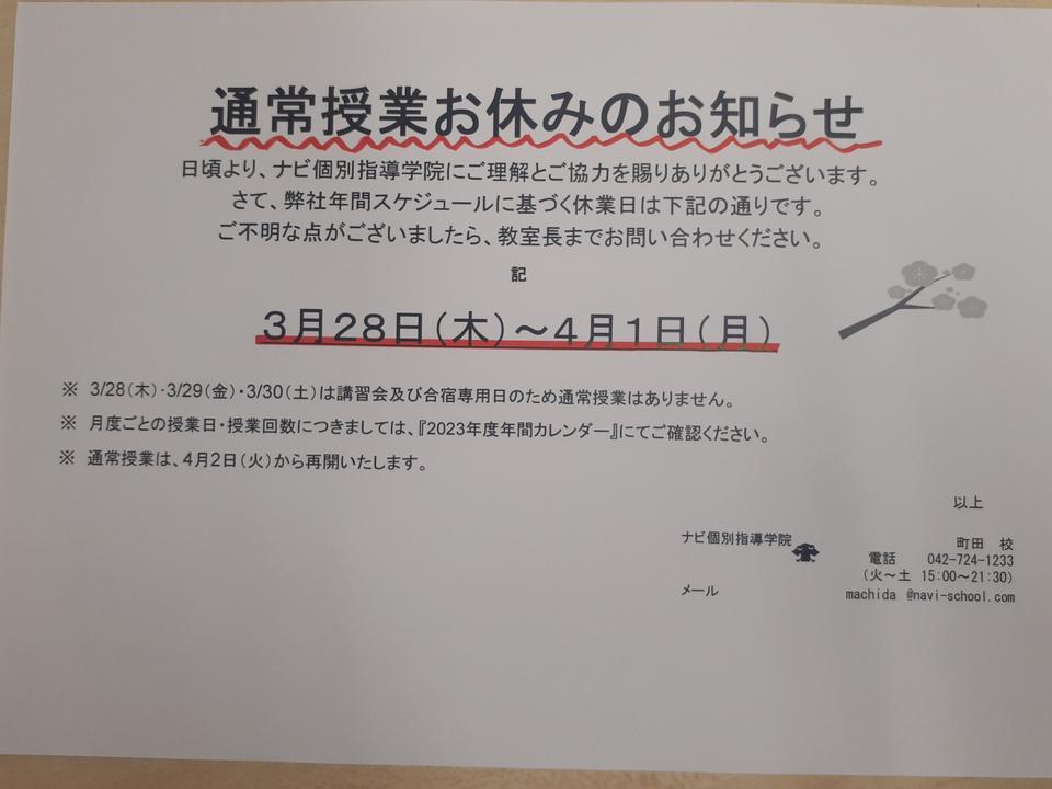 町田校では、3/28(木)~4/1(月)は通常授業はお休み。春期特別合宿を実施しております。