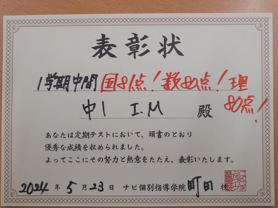 国語81点 数学80点 理科80点 よく頑張りましたね!!