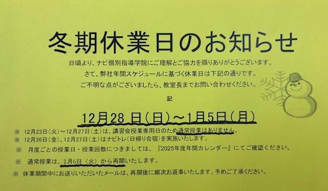 日頃より、ナビ個別指導学院にご理解とご協力を賜りありがとうございます。