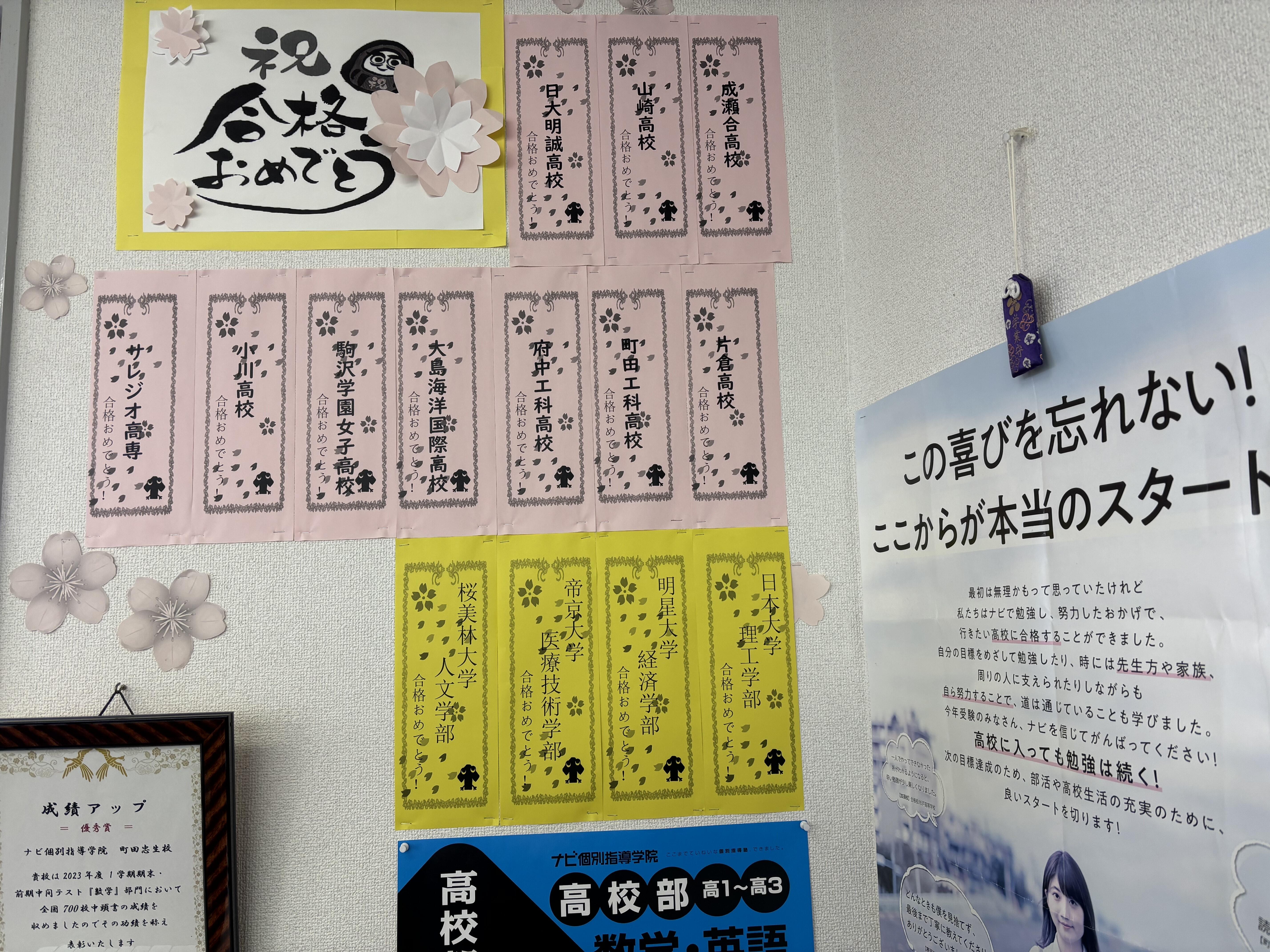 教室には高校の合格と同様に大学合格の掲示もさせて頂いております。