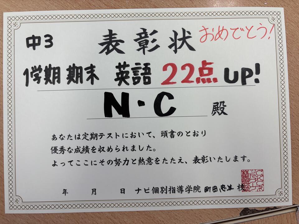 英語の点数が22点伸びた生徒がいます。