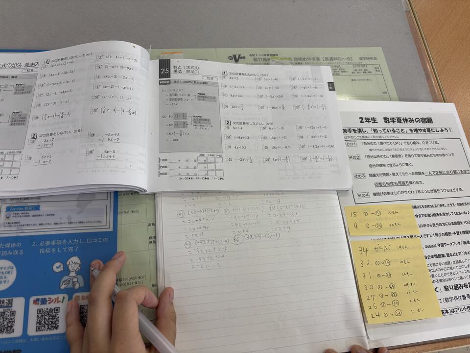 連日夏休みの宿題を持って自習に来る生徒がいらっしゃいます。
