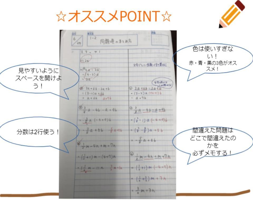 の2点です。そこである生徒のノートを簡単に紹介したいと思います。