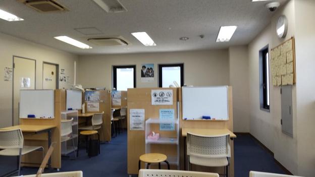 ナビ個別指導学院の授業は、個別の席ごとに設置された自分専用のホワイトボードで解き方や考え方を一緒に確認、それから生徒が問題を解くという「個別授業」スタイルです。