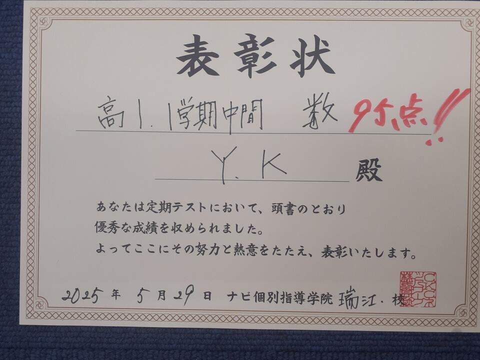 新高校1年生のY.Kさん。数学95点!!英語79点!