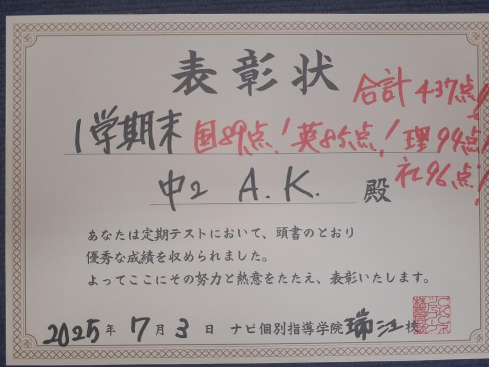 苦手な社会を「テスト対策講座」で時間を作って学習したことで96点!前回比36点UP!!