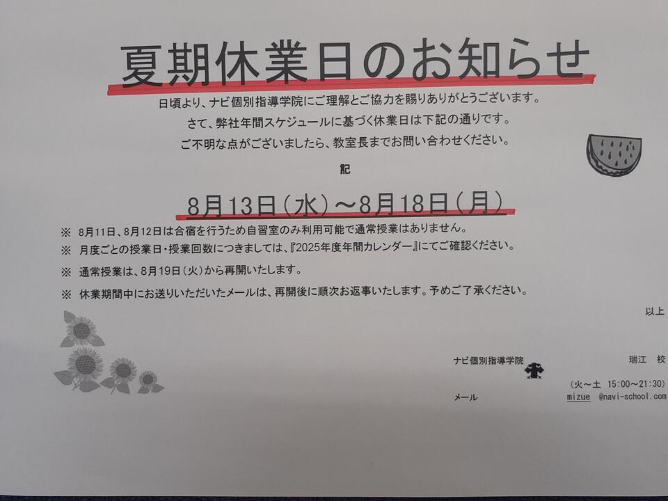 ナビ個別指導学院 瑞江校です。
