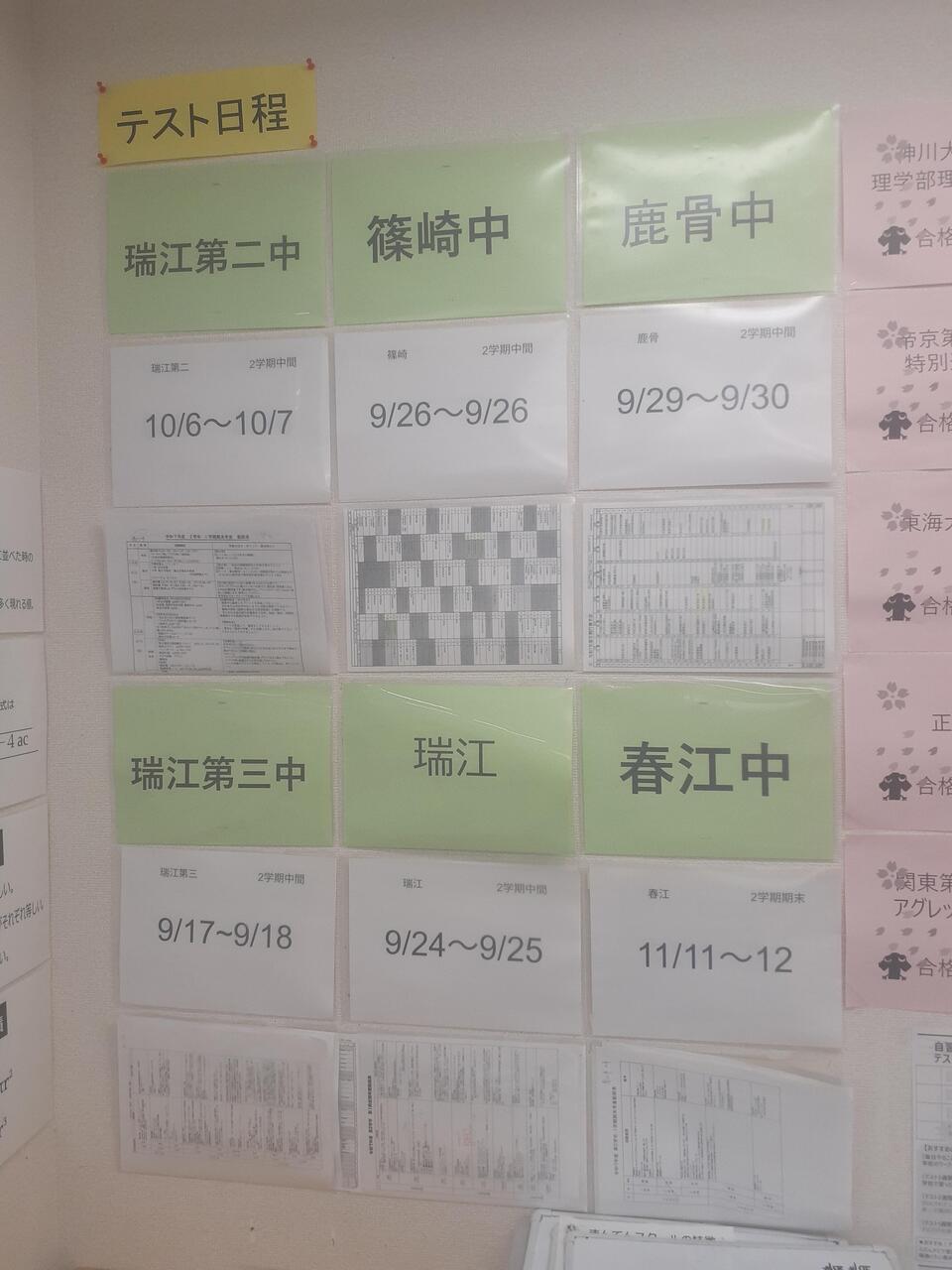 春江中 11/11.12 9/11~13 (期末のみ。だからこそ9月が大事!)