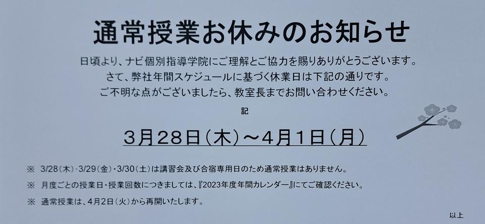 3月28日(木)・29日(金)・30日(土)は通常授業がお休みで講習会専用日となります。