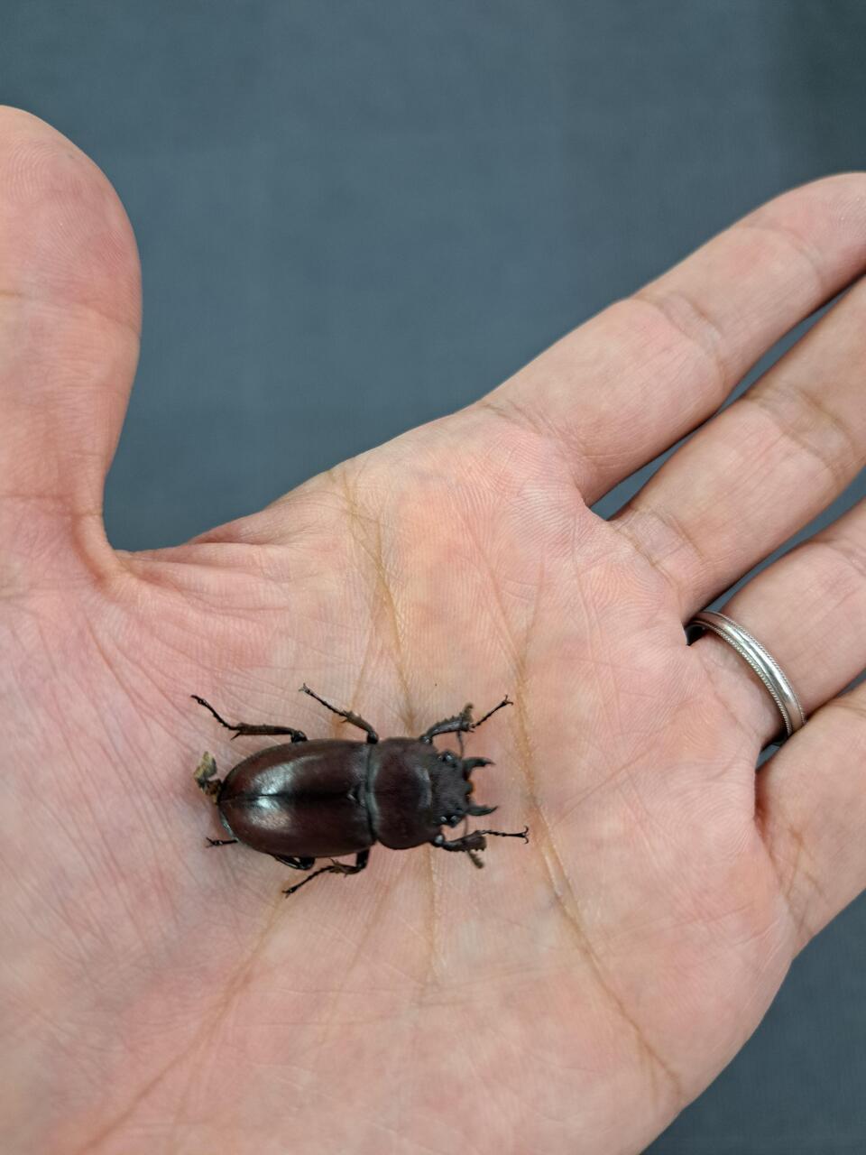 夏を先取りして、教室にコクワガタのメスが出現しました!