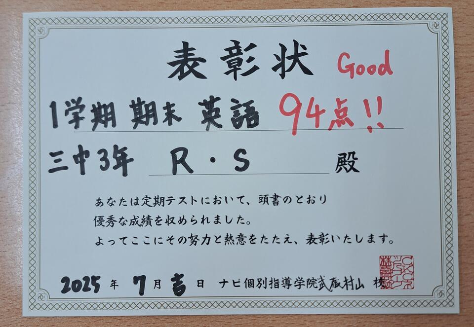 しっかりと復習をして、次回以降のテストに繋げましょう。