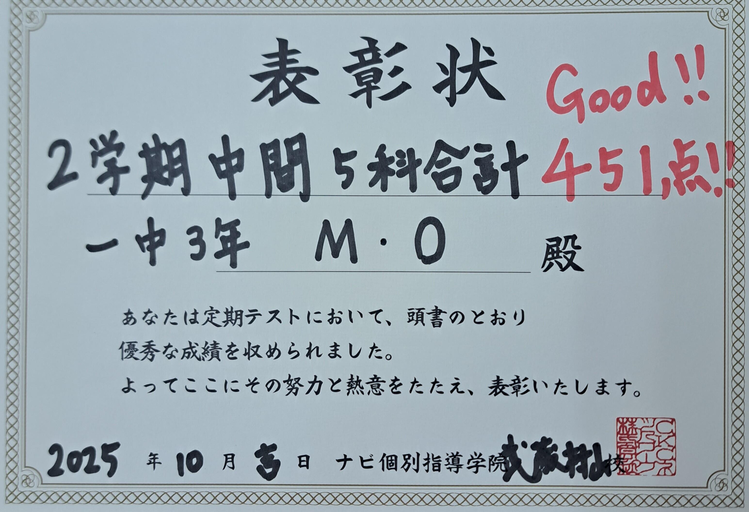 印象的だったのが、テストかなり落ち込んでいたMさん。