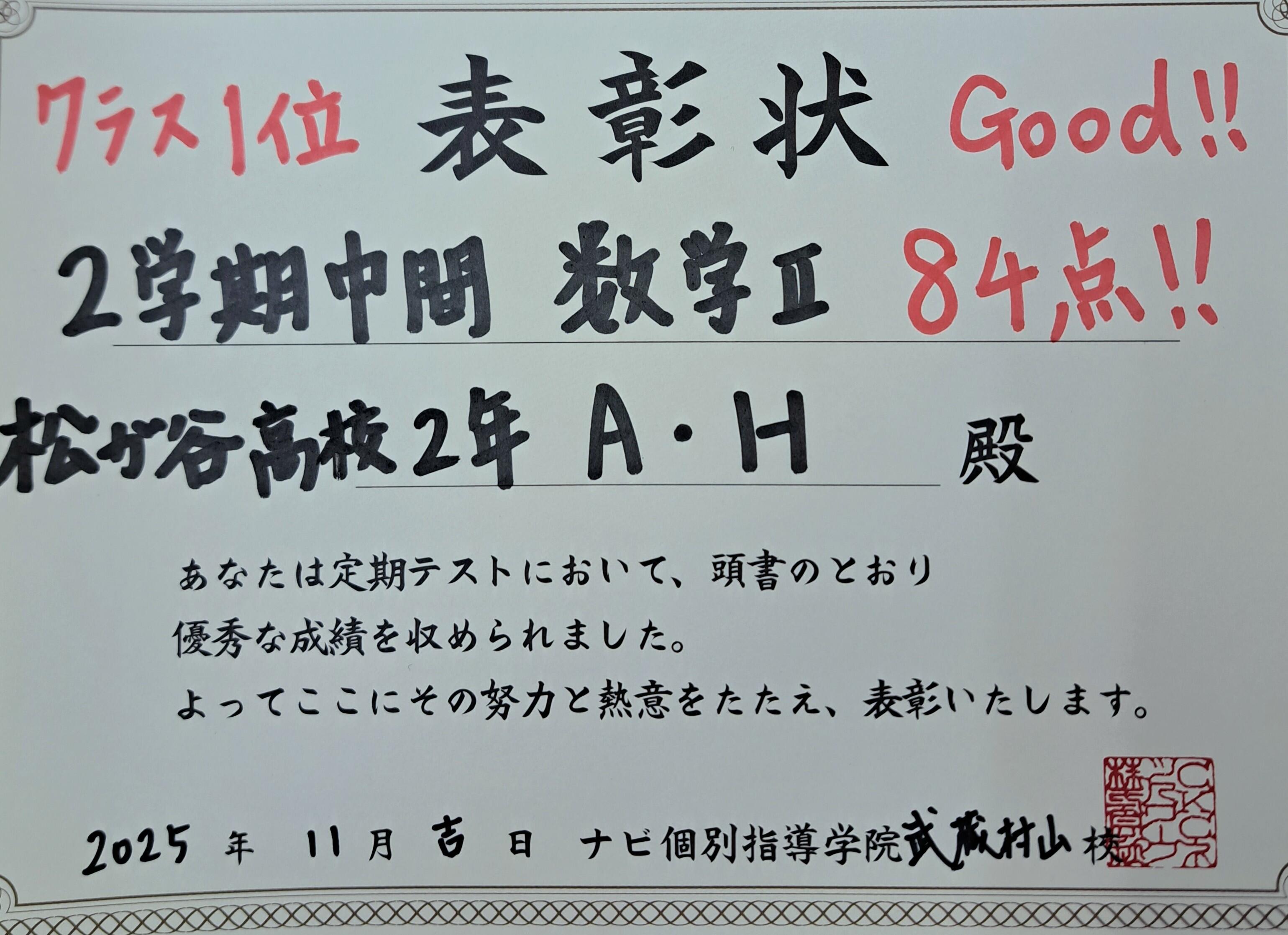 中間テストではクラス一桁順位の科目がいくつかあり、